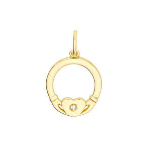 The Irish Tradition Claddagh With 14kt Gold DIamond Pendant Charm