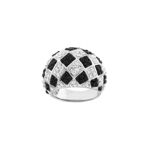 Black and White Checkerboard Crystal Sterling Silver Dome Ring
